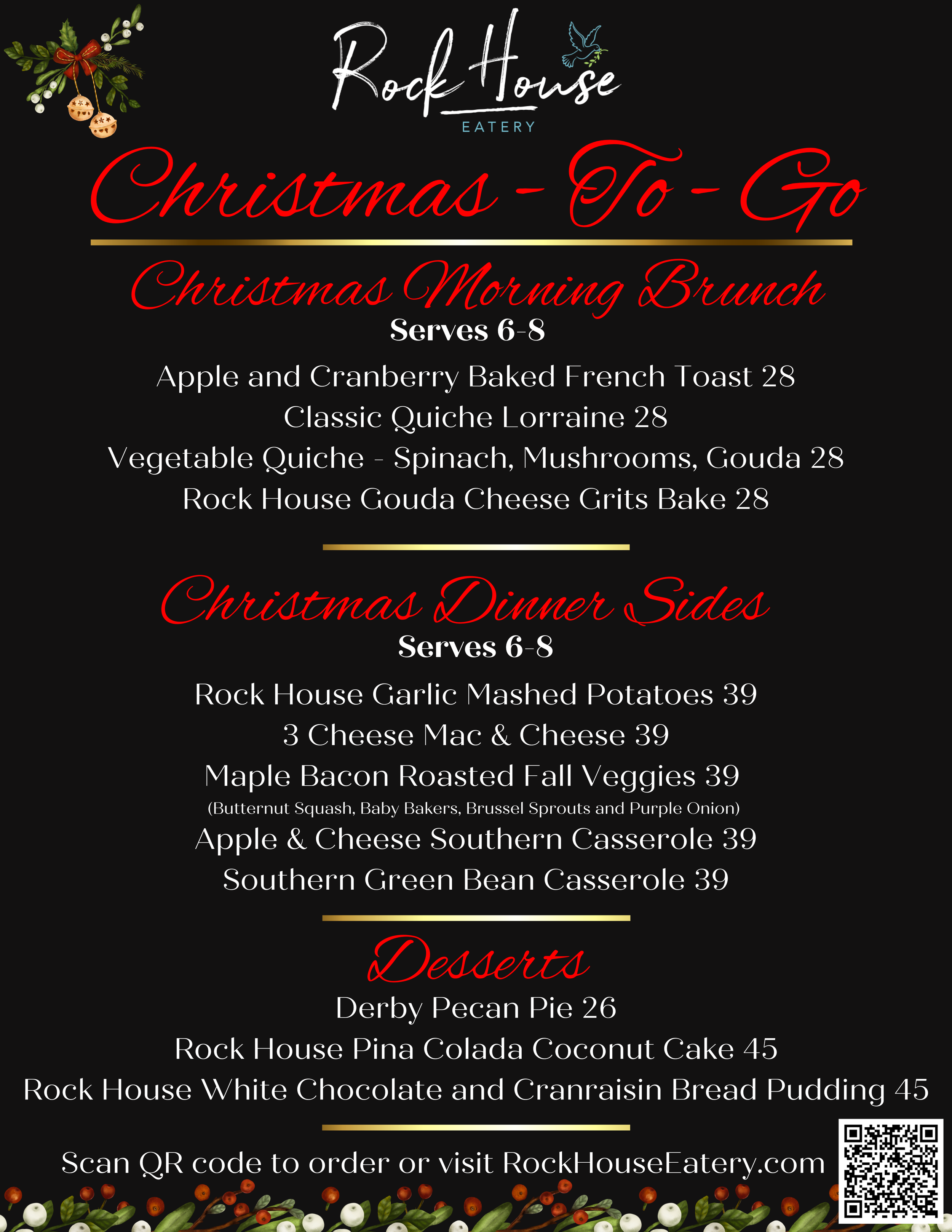 Rock House hosts special events and creates special menus throughout the year, such as our Thanksgiving and Christmas-To-Go menus,