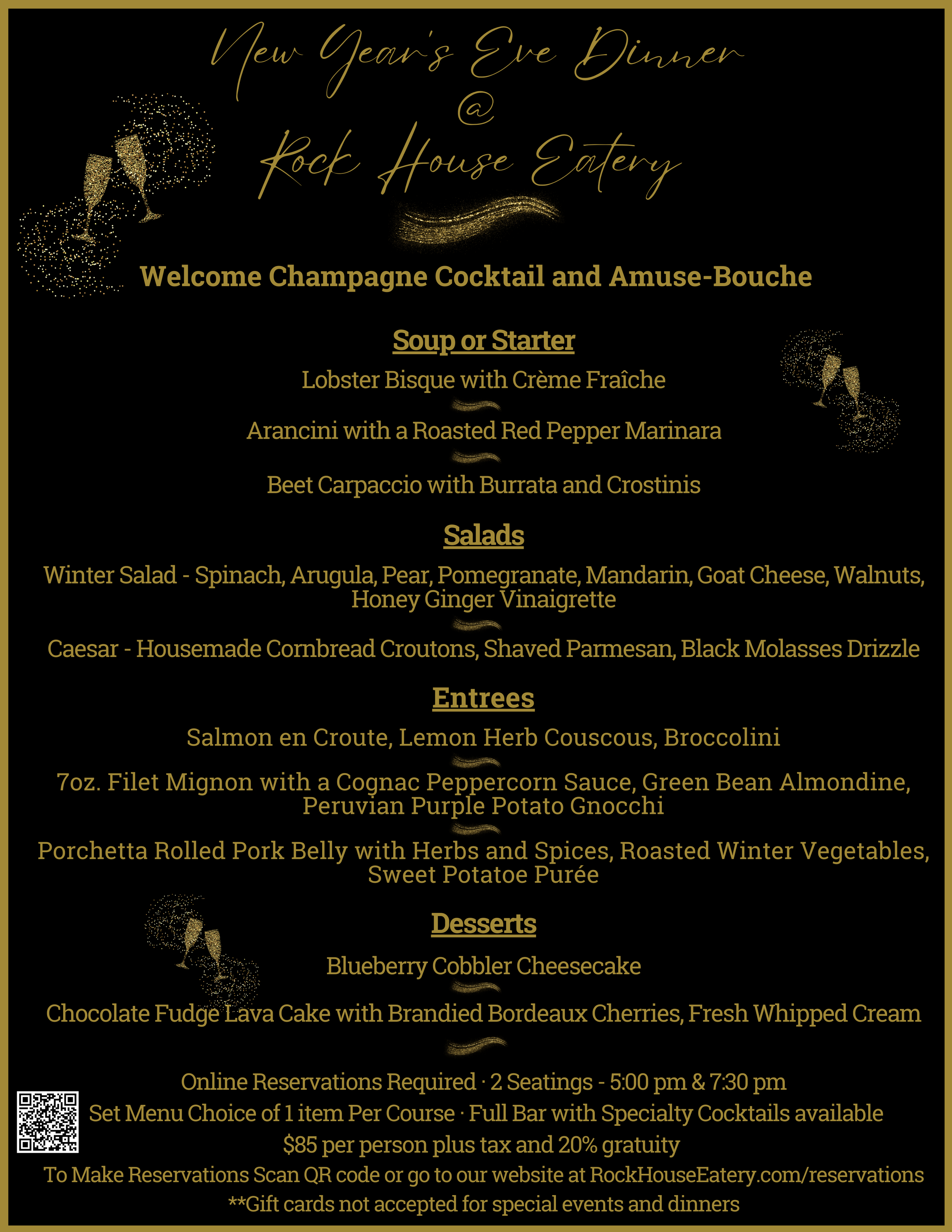 Online Reservations Required ยท 2 Seatings - 5:00 pm & 7:30 pm